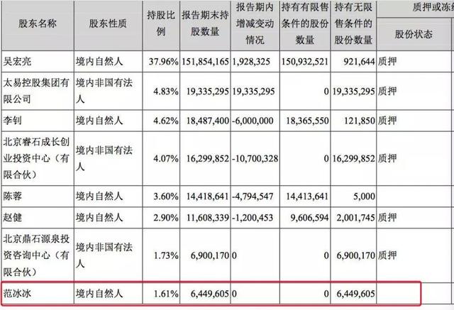 在此之前,唐德影视的2018年年报中依旧显示:范冰冰还是公司的第八大股东,持有公司644.96万股,持股比例1.61%。