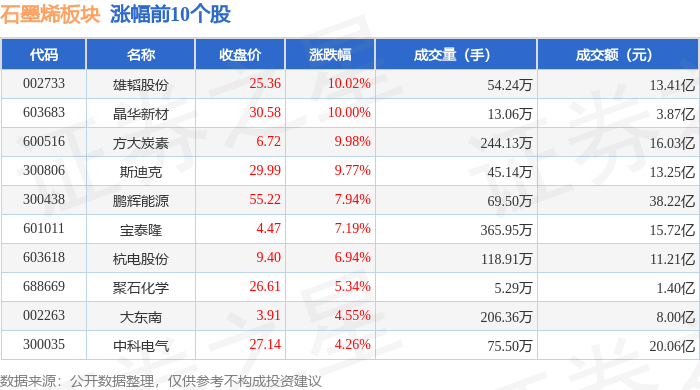 石墨烯板块1股票推荐官网_今日牛股+明日潜力股全解析_短线+长线策略每日更新1月11日涨052%雄韬股份领涨主力资金净流入902亿元