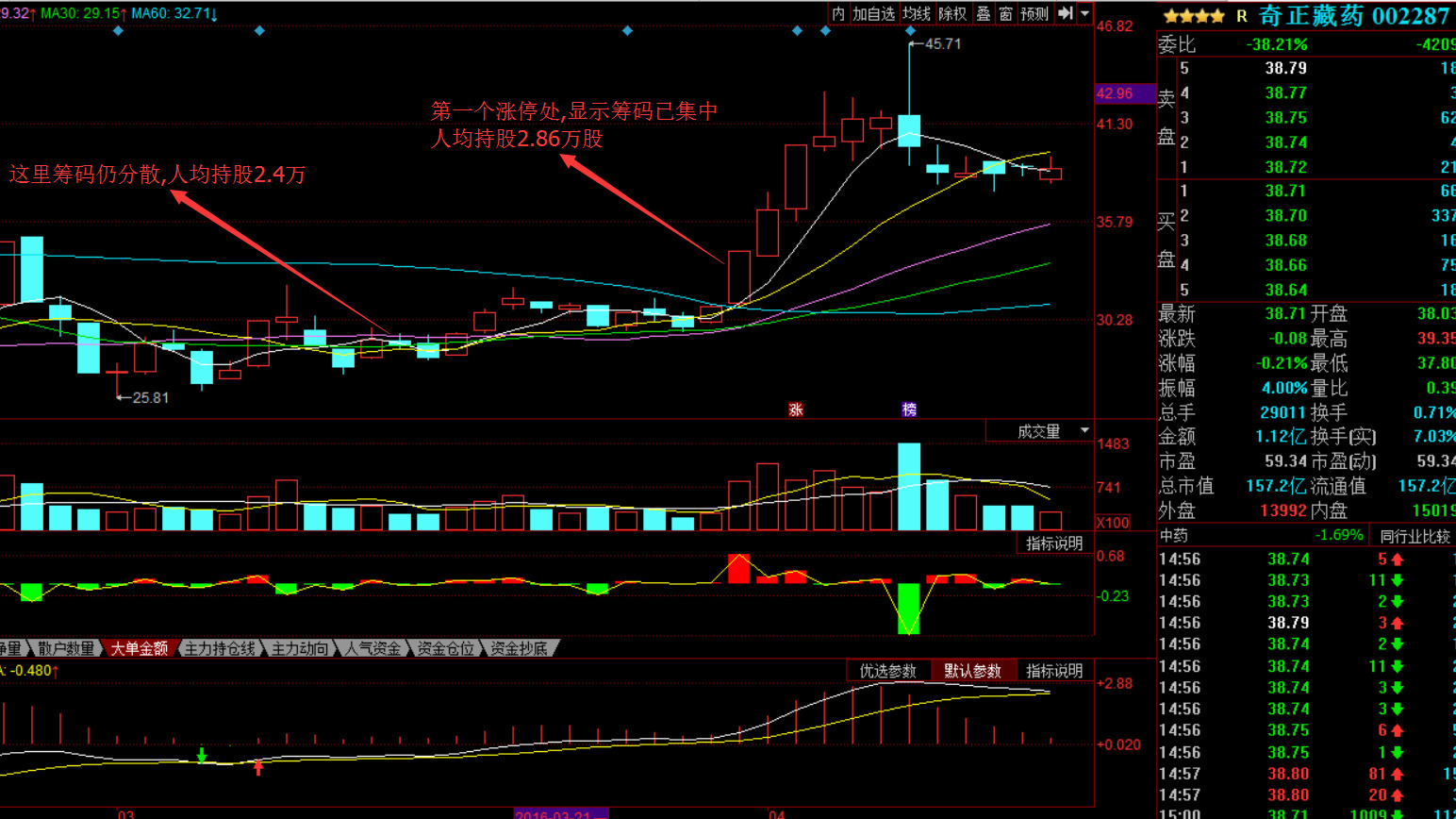 按1198万股被重新分配来计算,1198*40%=479万股,预计大概有500万股左右,在31日号时完成了建仓,这价值是1.7亿元 ?这基本上是此主力的底仓了,随后的拉升基本上会不断做T上去,仓位不会增加多少。