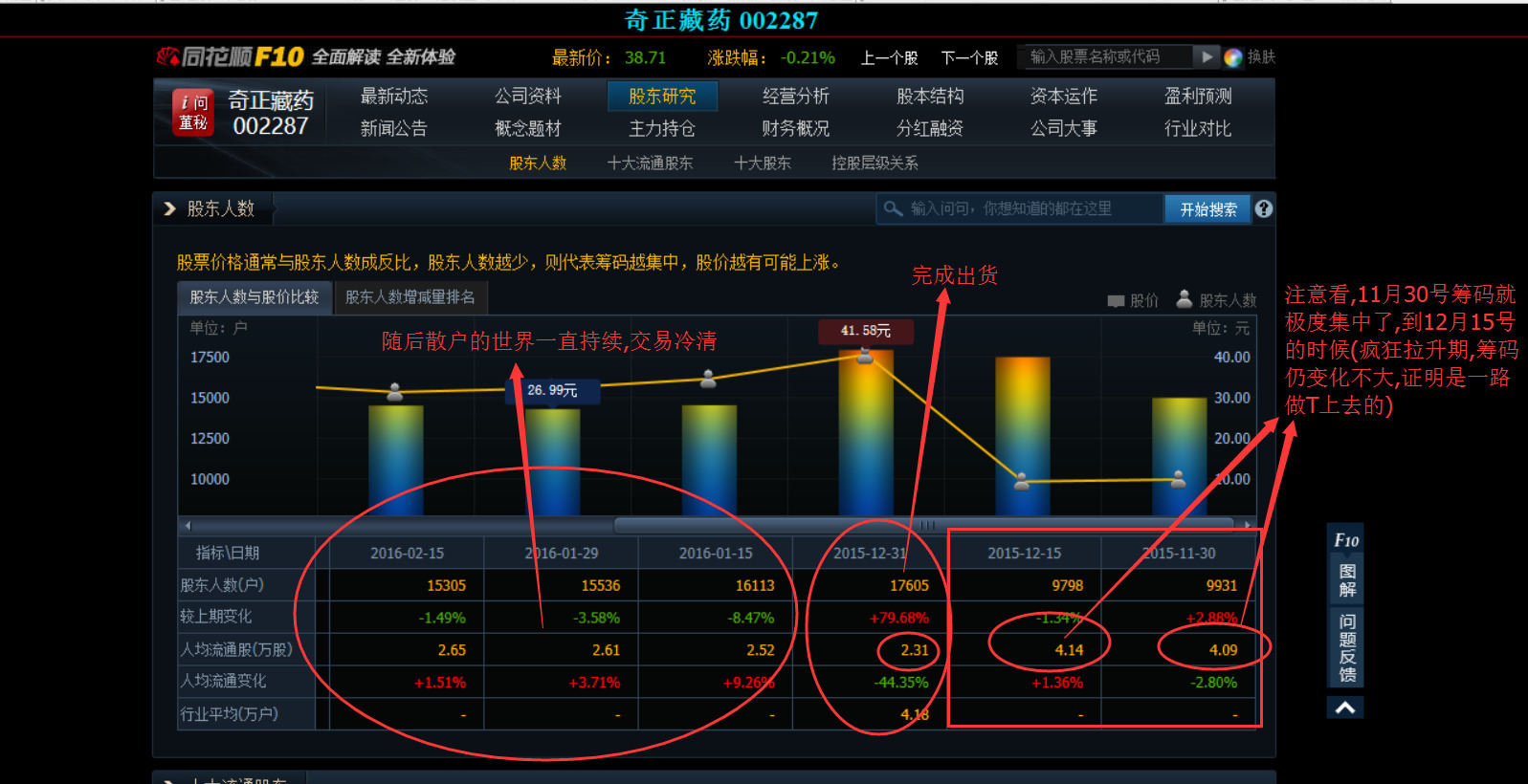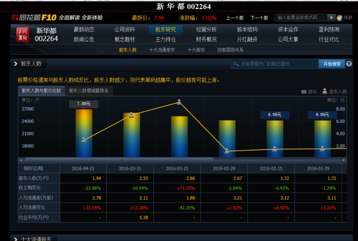 在经历了3-4个月的交易冷清期后,突然数据显示,在3月31日开始人均持股增加至2.86万股,股东人数由16859剧减至14195,这里只是短短的15天,那么这个数据能怎么看?