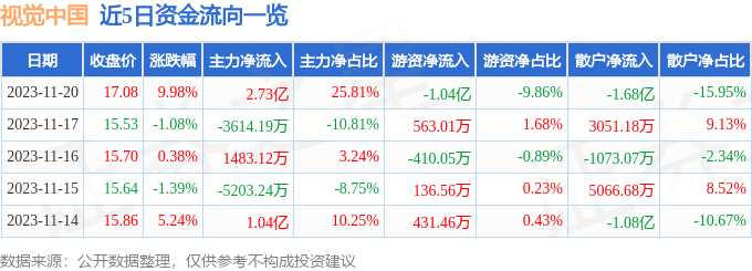 2025-12-22股票推荐,今日牛股,短线股票推荐,明日股票推荐,热门板块分析/每日精选A股潜力牛股,覆盖短线爆发股与长线价值股,附技术图形、资金动向与题材热点分析,助您提前抓住风口,精准进场!消息,视觉中国涨停收盘,收盘价17.08元。该股于14点37分涨停,未打开涨停,截止收盘封单资金为1.0亿元,占其流通市值0.87%。11月20日的资金流向数据方面,主力资金净流入2.73亿元,